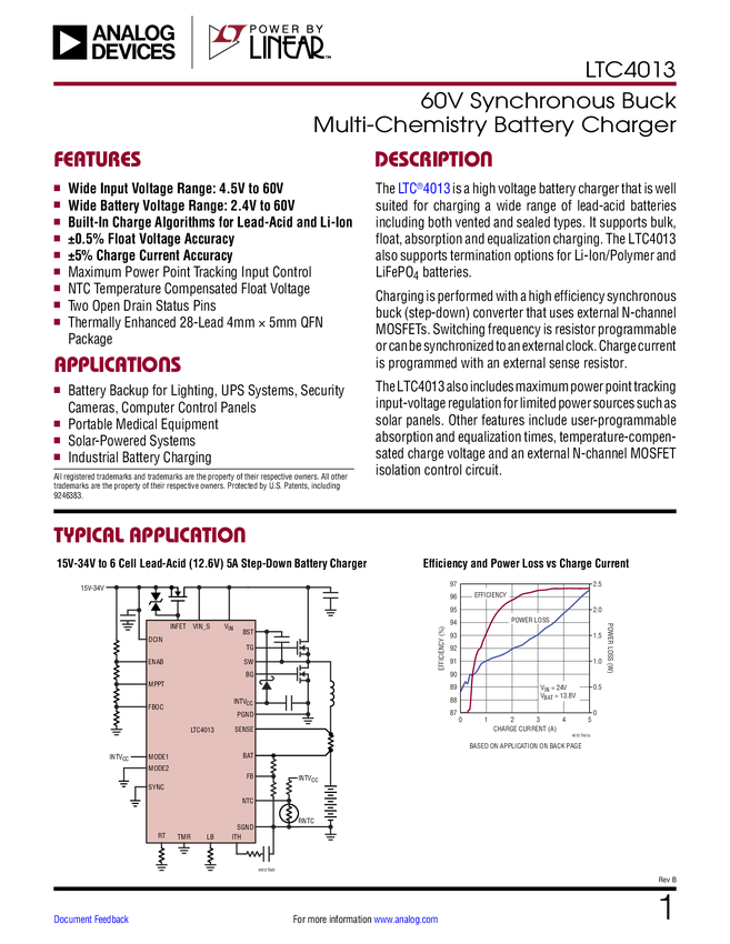 LTC4013 60V Synchronous Buck Multi-Chemistry Battery Charger