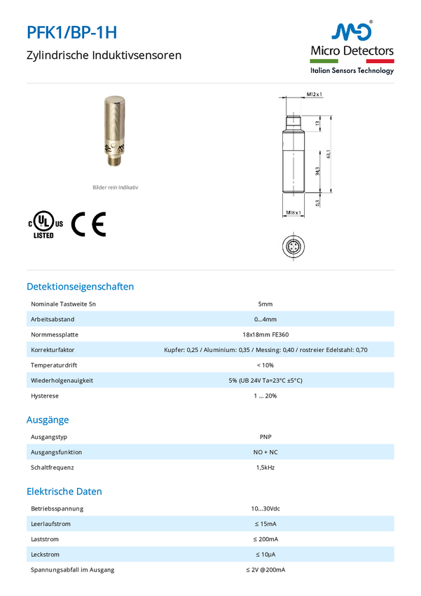 PFK1/BP-1H Czujnik indukcyjny MD Micro Detectors PFK1/BP-1H 1 szt.