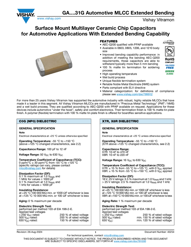 GA....31G Automotive MLCC Extended Bending Surface Mount Multilayer Ceramic Chip Capacitors for Automotive Application...