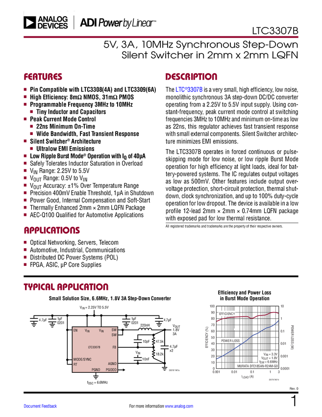 LTC3307B 5V, 3A, 10MHz Synchronous Step-Down Silent Switcher in 2mm x 2mm LQFN