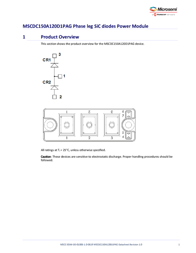 MSCDC150A120D1PAG-Module MSCDC150A120D1PAG 1200V Phase Leg SiC Diode Module Datasheet