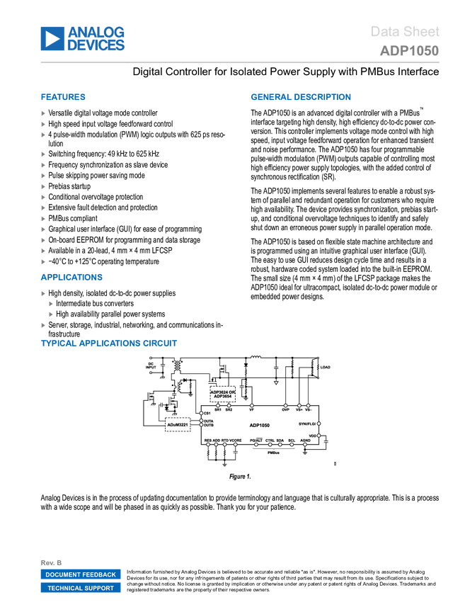 ADP1050 Digital Controller for Isolated Power Supply with PMB Interface