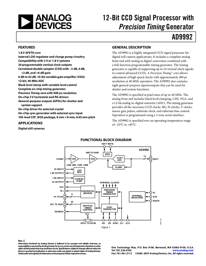 AD9992 12-Bit CCD Signal Processor with ™ Generator