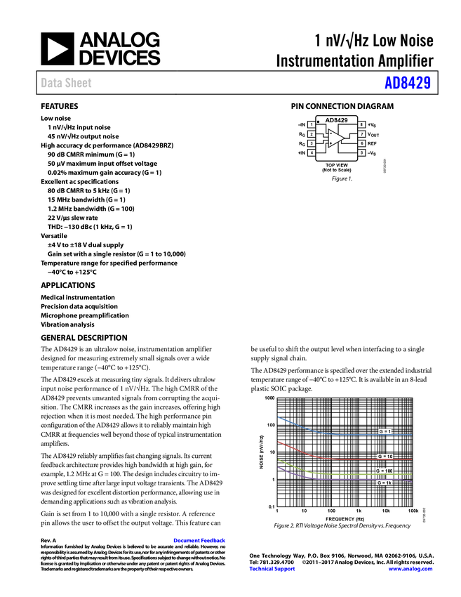AD8429 1V/√H Low Noise Instrumentation Amplifier