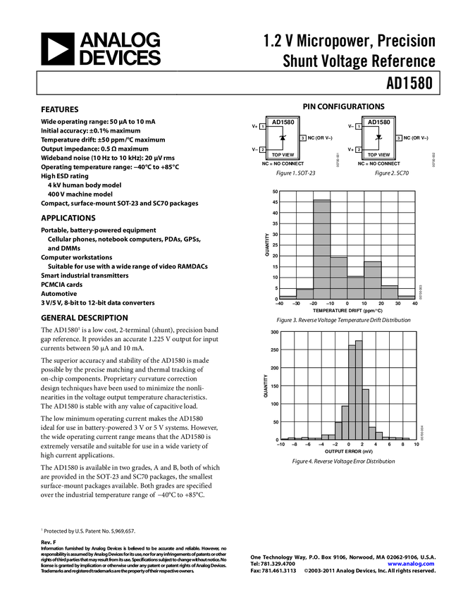 AD1580 1.2 V Micropower, Precision Shunt Voltage Reference