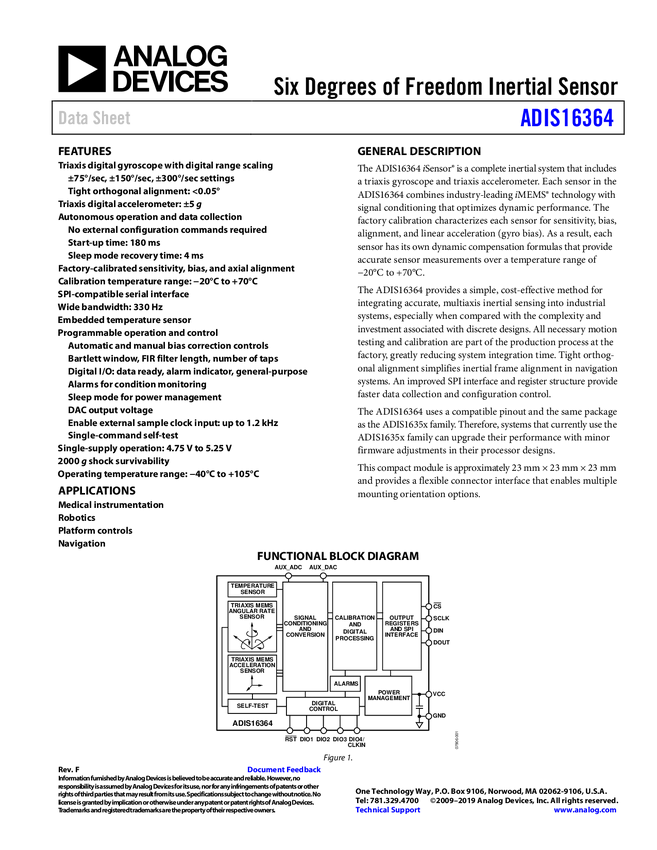 ADIS16364 Six Degrees of Freedom Inertial Sensor