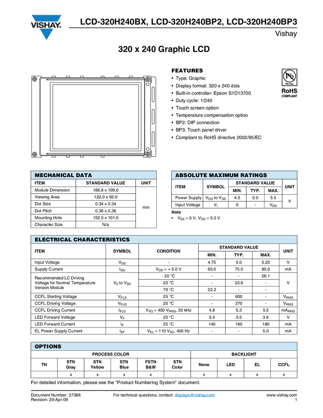LCD-320H240BP2 320 x 240 Graphic LCD