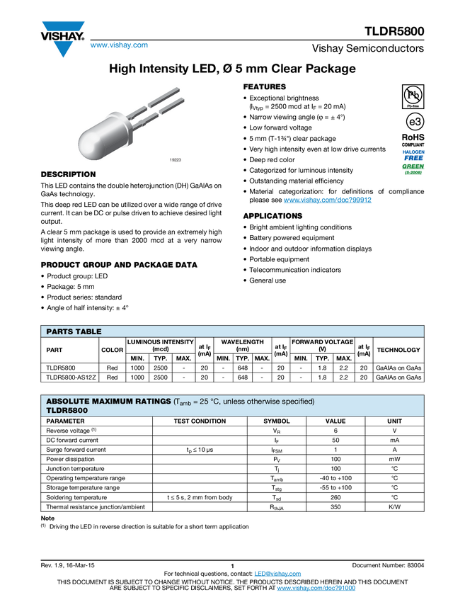 TLDR5800 High Intensity LED, Ø 5 mm Clear Package