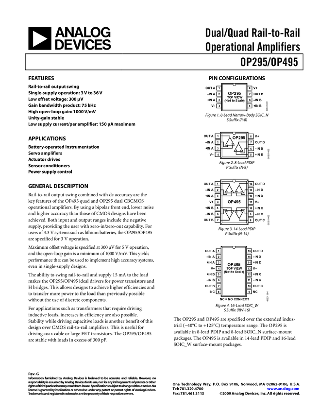 OP495 Rail-to-Rail Quad Operational Amplifier