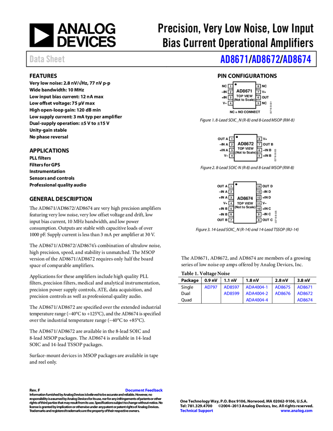 AD8672 Precision Low Noise, Low Input Bias Current Dual Op Amp