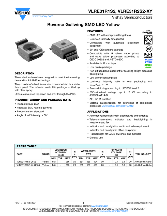 VLRE31R2S2-XY Reverse Gullwing SMD LED Yellow