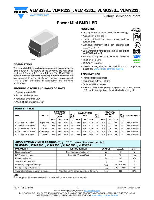VLMS233.., VLMK233.., VLMO233.., VLMY233..
