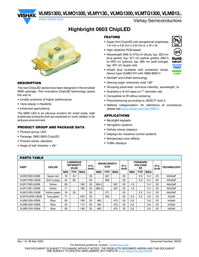 VLMG1300 Highbright 0603 ChipLED