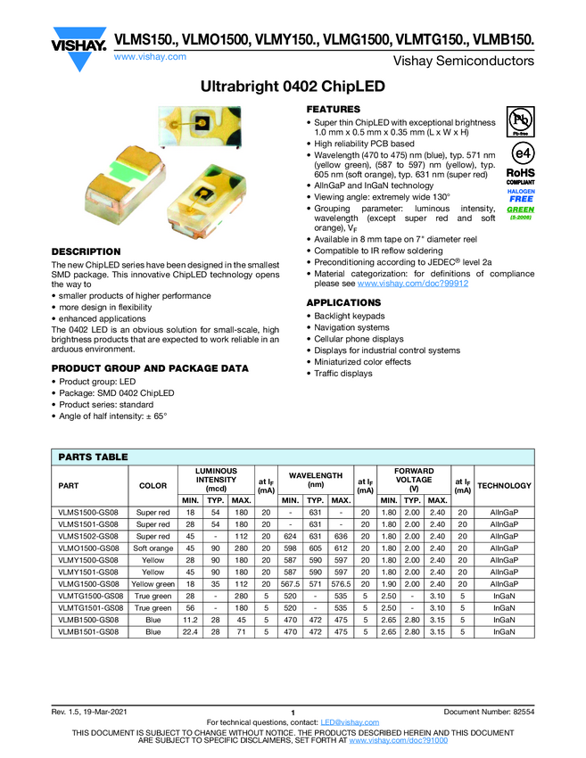 VLMG1500 Ultrabright 0402 ChipLED