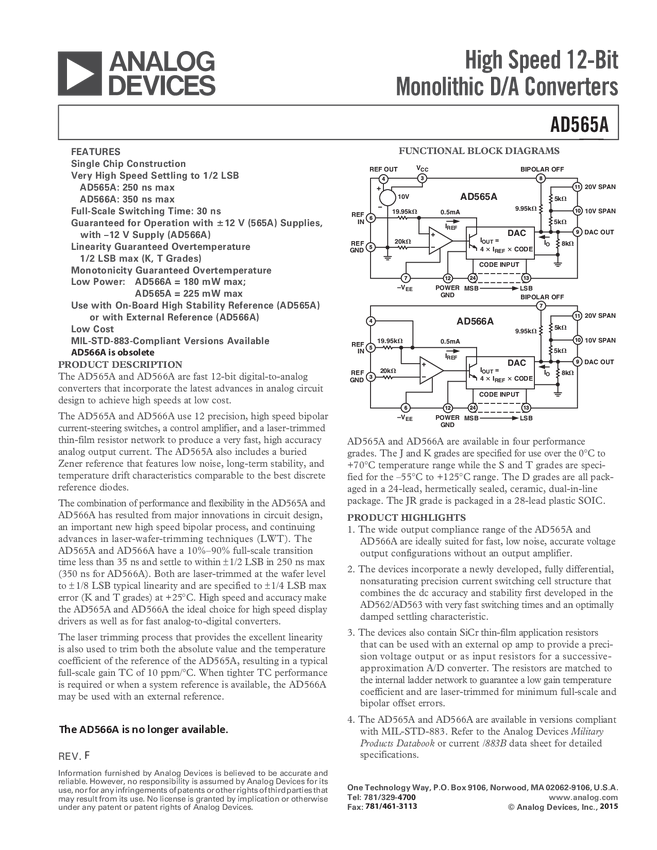 AD565A 12-bit Digital-to-Analog Converters, with Zener Reference