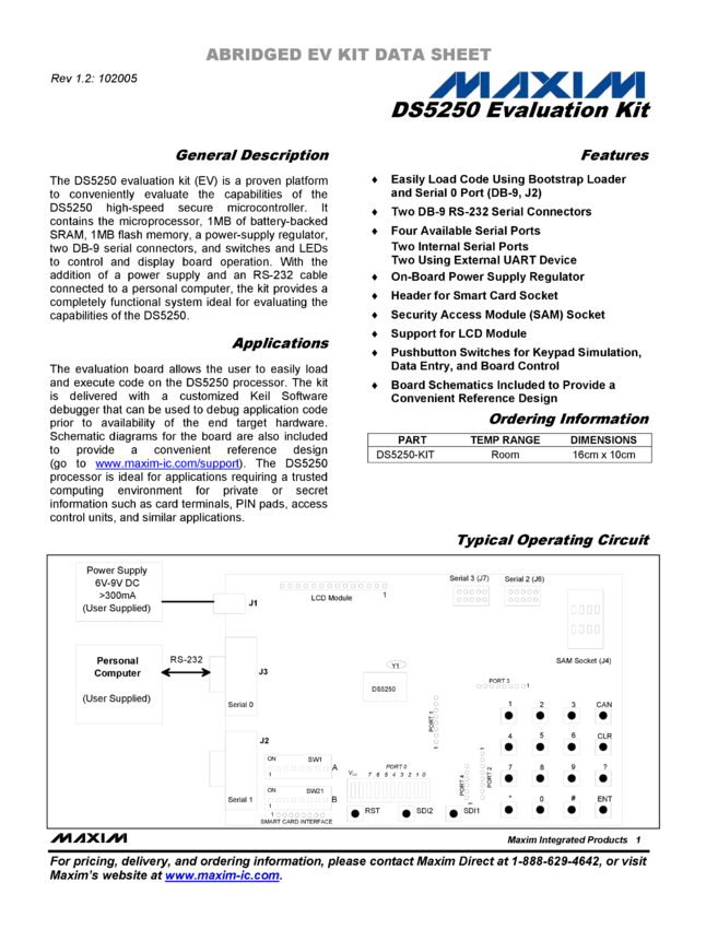 DS5250KIT DS5250-KIT Evaluation Kit for the DS5250