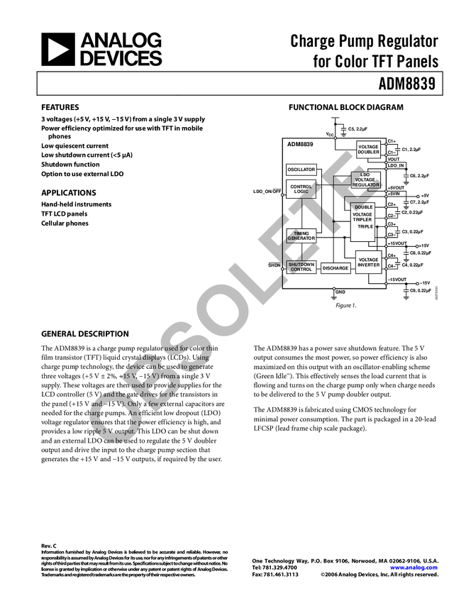 ADM8839 Charge Pump Regulator for Color TFT Panel
