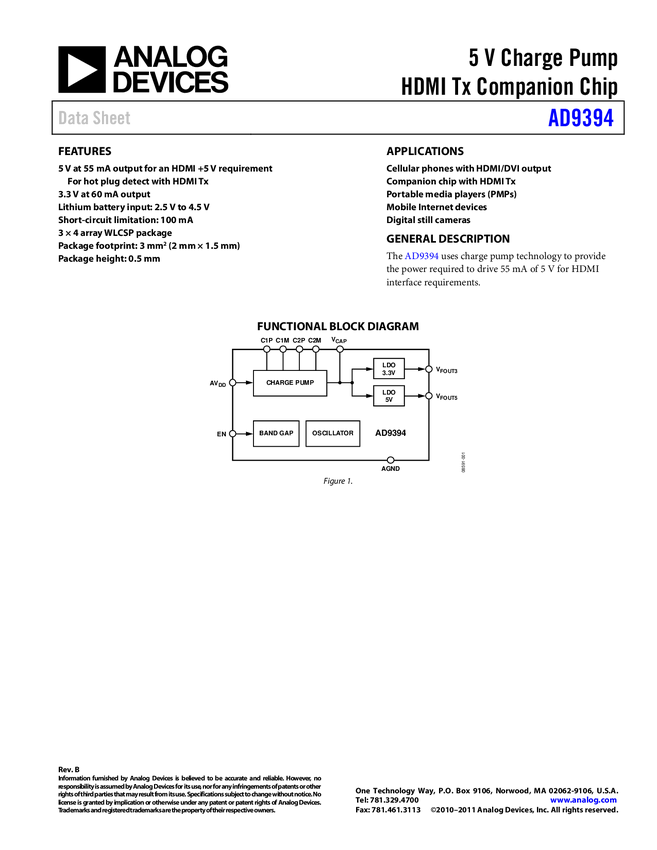 AD9394 5 V Charge Pump HDMI Tx Companion Chip