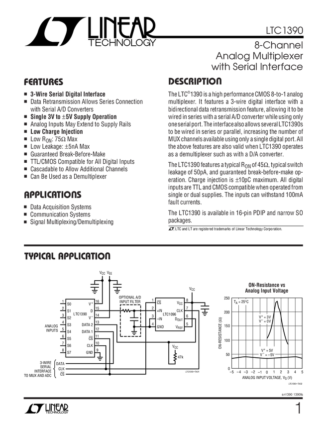 LTC1390 8-Channel Analog Multiplexer with Serial Interface