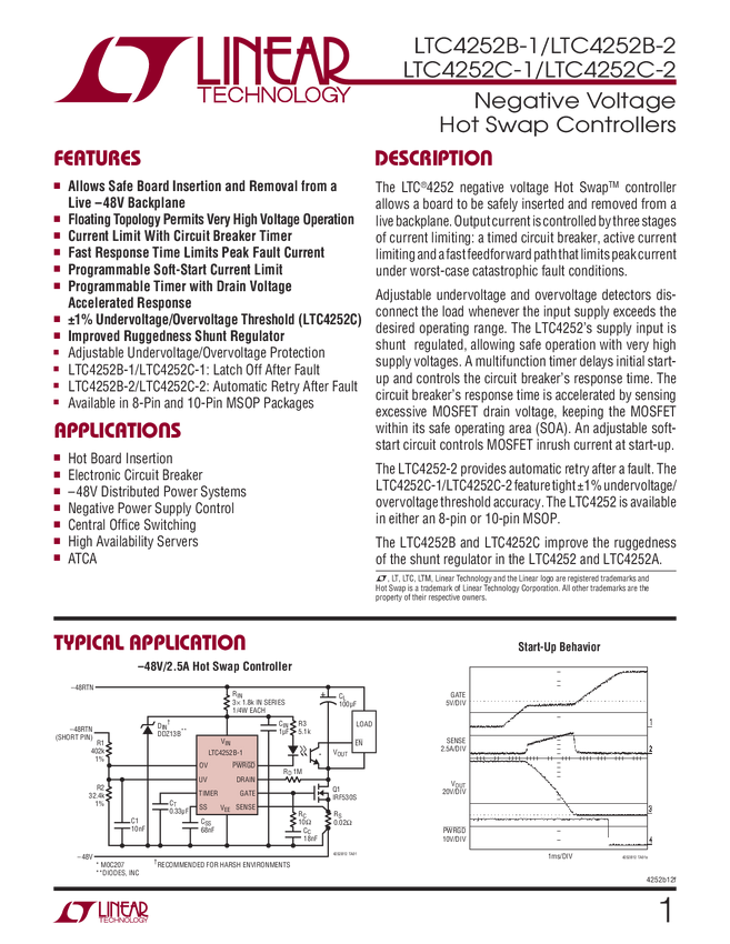 LTC4252B LTC4252C Negative Voltage Hot Swap Controllers