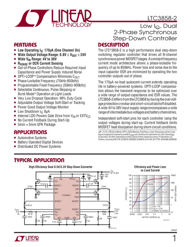 LTC3858-2 Low I, Dual 2-Phase Synchronous Step-Down Controller