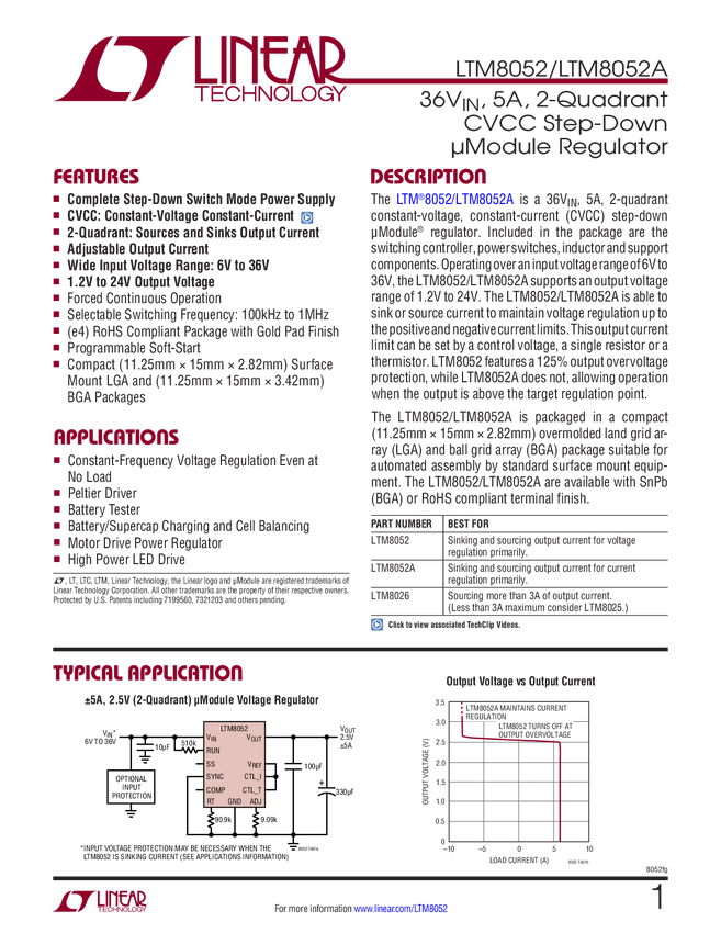 LTM8052 LTM8052A 36V, 5A, 2-Quadrant CVCC Step-Down μModule Regulator