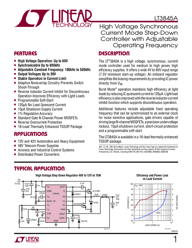 LT3845A High Voltage Synchronous Current Mode Step-Down Controller with Adjustable...