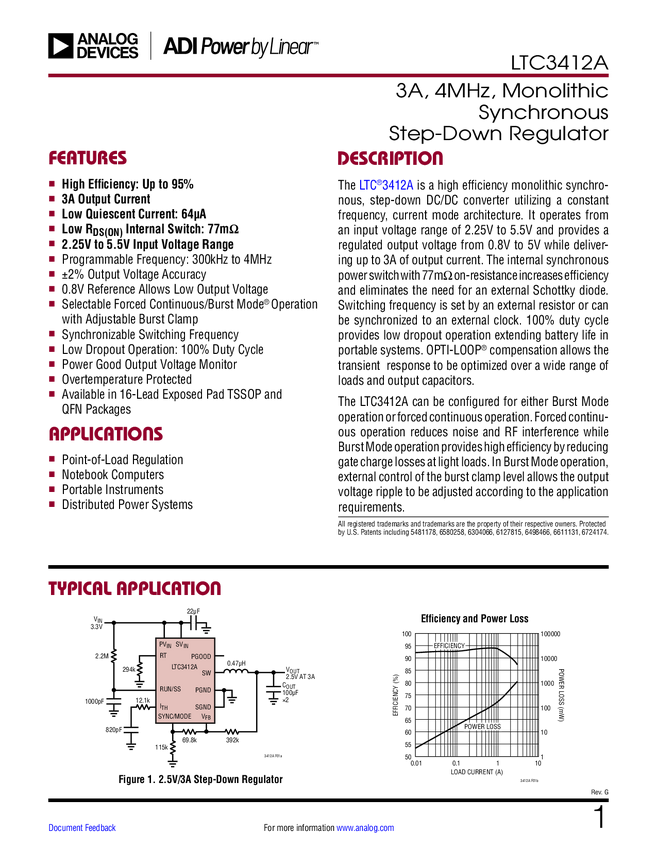 LTC3412A 3A, 4MHz, Monolithic Synchronous Step-Down Regulator