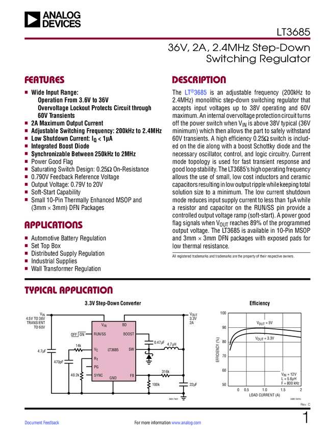 LT3685 36V, 2A, 2.4MHz Step-Down Switching Regulator