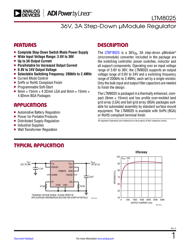 LTM8025 36V, 3A Step-Down µModule Regulator