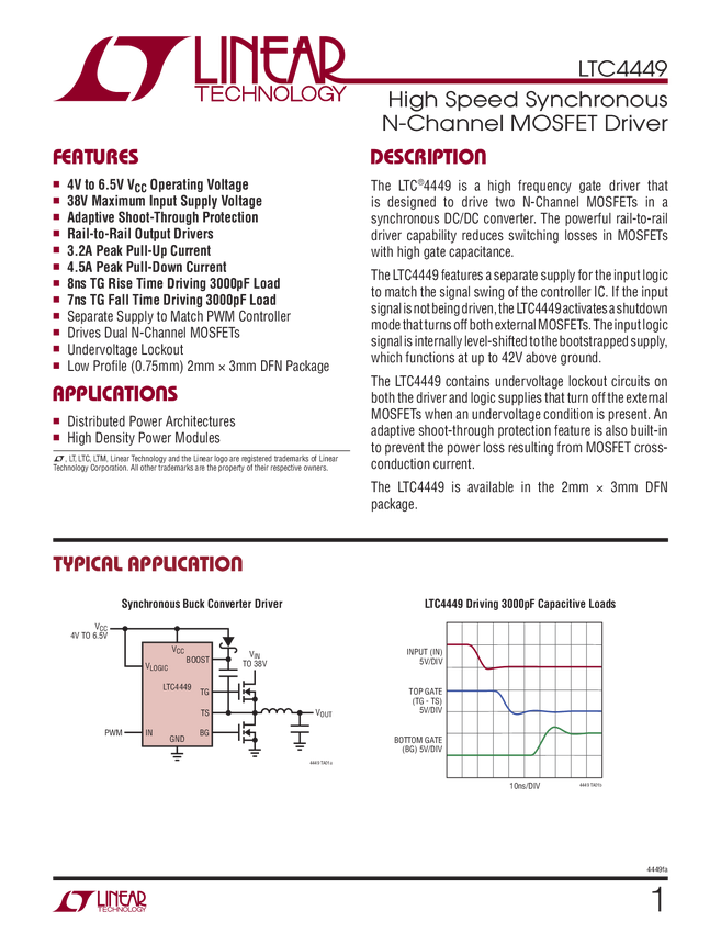 LTC4449 High Speed Synchronous N-Channel MOSFET Driver