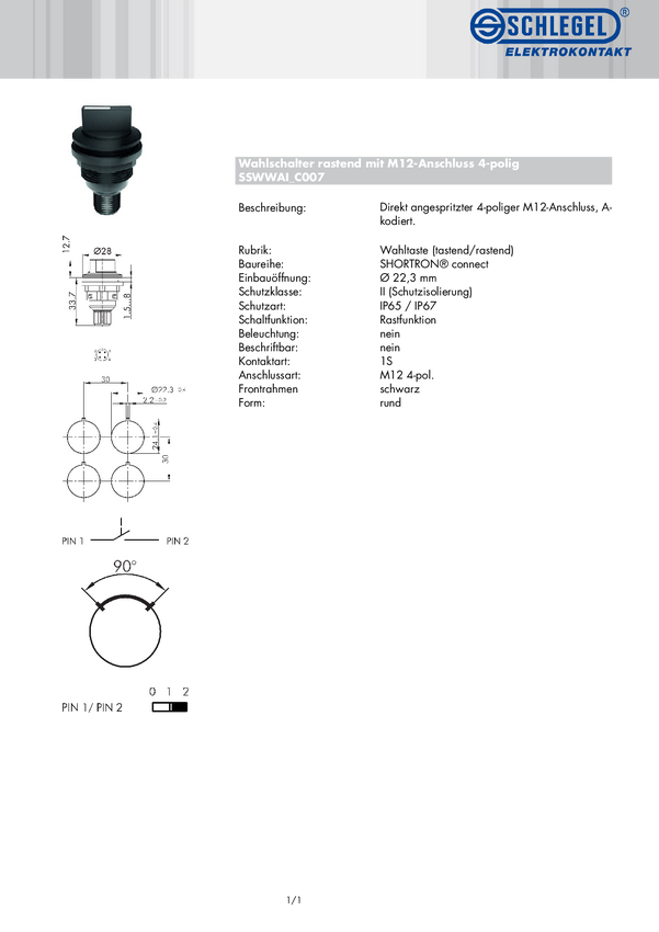 SSWWAI_C007 Schlegel SSWWAI_C007 SSWWAI_C007 Przełącznik ścienny manualne, przełącznik...