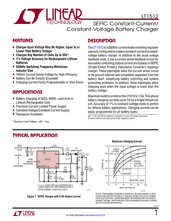 SEPIC Constant-Current/Constant-Voltage Battery Charger
