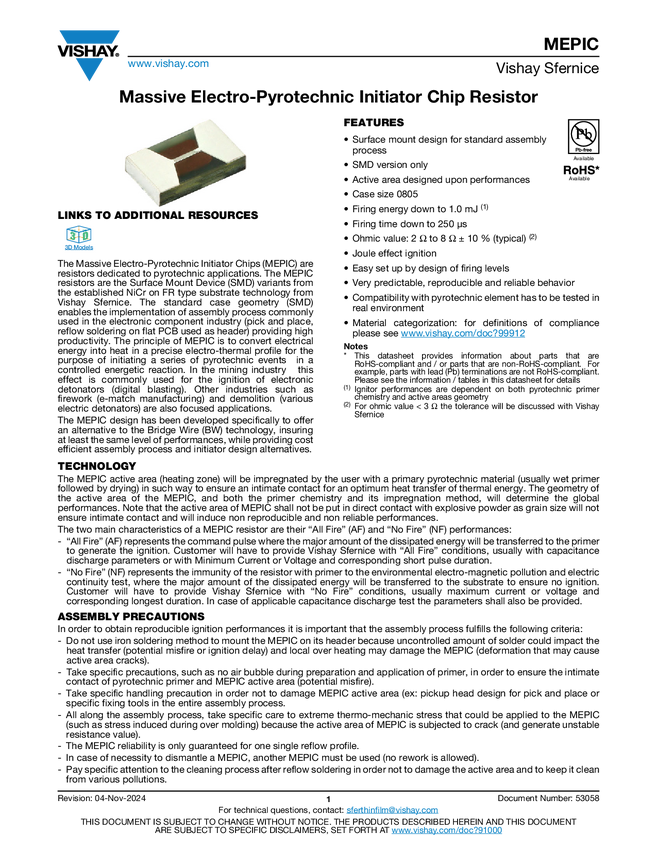 MEPIC Massive Electro-Pyrotechnic Initiator Chip Resistor