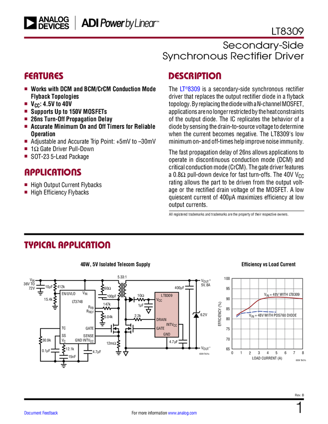 LT8309 Secondary-Side Synchronous Rectifier Driver