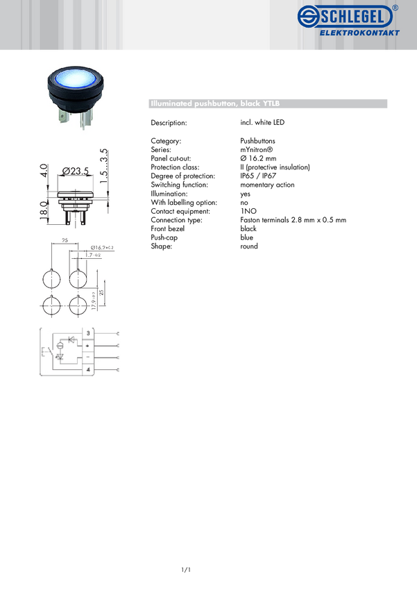 Schlegel YTLB YTLB Przycisk manualne, 1 przycisk 5 szt.