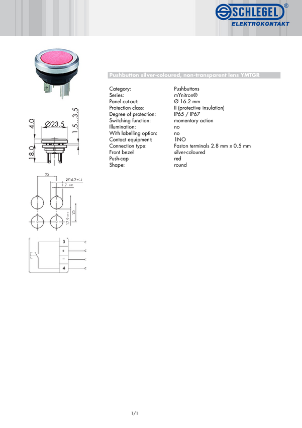 YMTGR Schlegel YMTGR YMTGR Przycisk manualne, 1 przycisk 5 szt.
