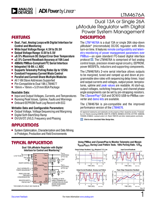 LTM4676A Dual 13A or Single 26A μModule Regulator with Digital Power System Manageme...