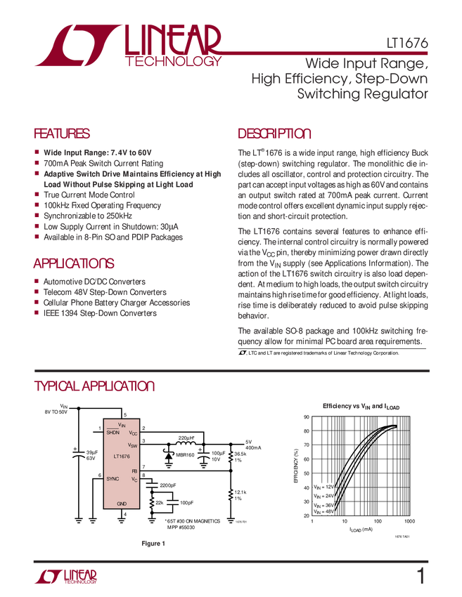 LT1676 Wide Input Range, High Efficiency, Step-Down Switching Regulator