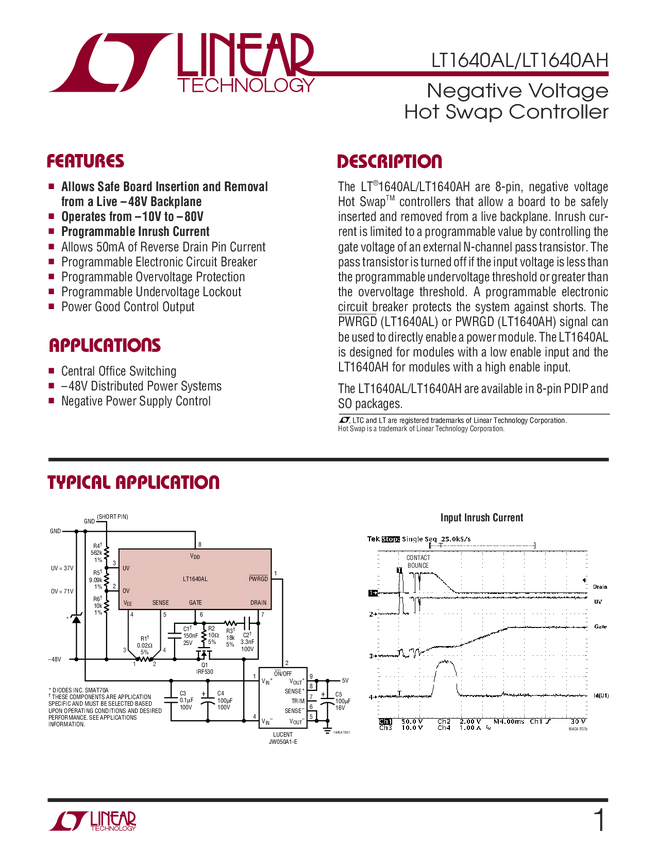 LT1640A Negative Voltage Hot Swap Controller