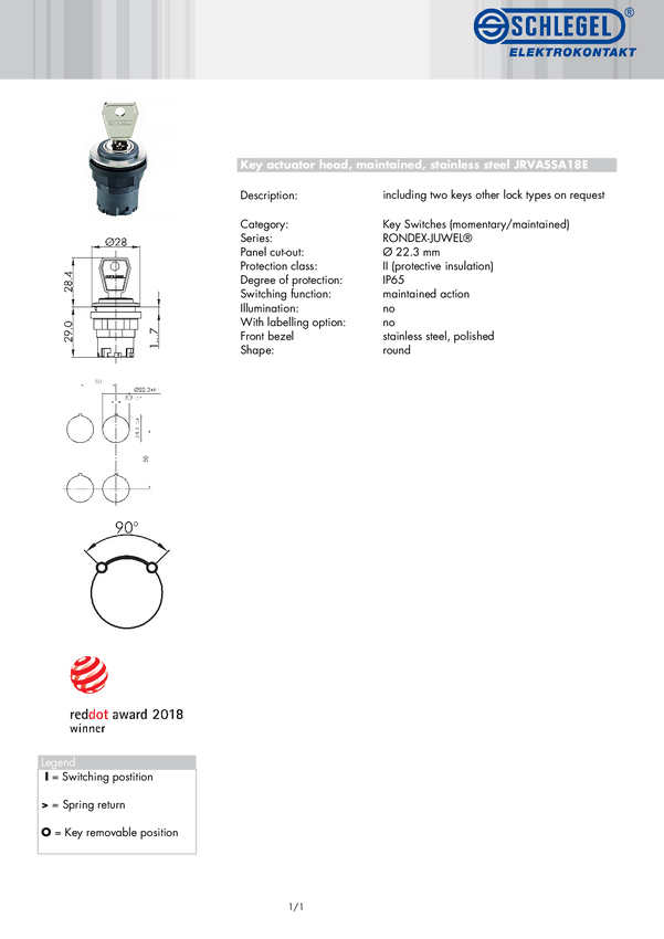JRVASSA18E Schlegel JRVASSA18E JRVASSA18E Przycisk kluczykowy manualne, klucz 2 szt.