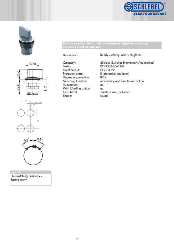 JRVAGWC Schlegel JRVAGWC JRVAGWC Przełącznik ścienny manualne, przełącznik obrotowy...