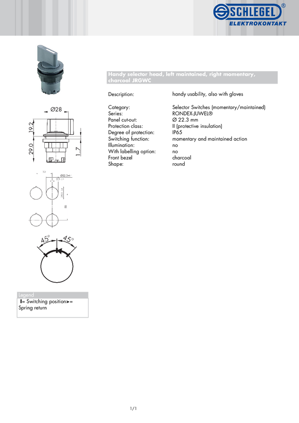 Schlegel JRGWC JRGWC Przełącznik ścienny manualne, przełącznik obrotowy 1 szt.