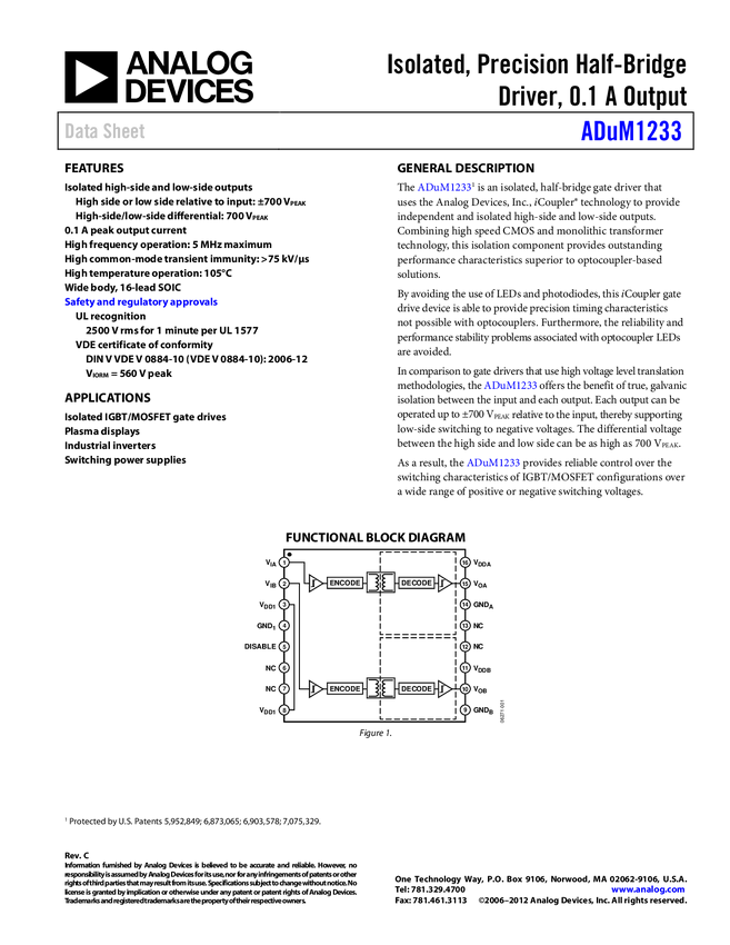 ADUM1233 Isolated, Precision Half-Bridge Driver, 0.1 A Output
