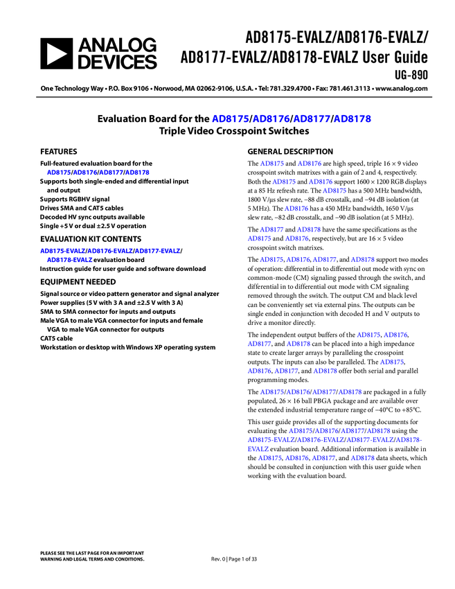 AD8176 450 MH, Triple 16 × 5 Video Crosspoint Switch