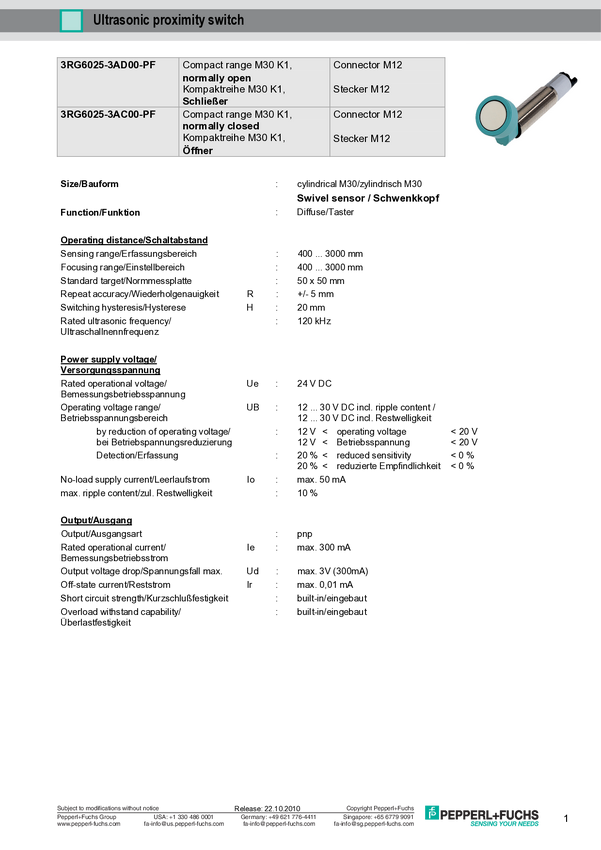 559845 Czujnik ultradźwiękowy Pepperl+Fuchs 559845 1 szt.