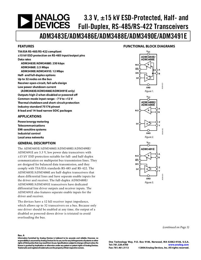 ADM3486E, ADM3483E, ADM3488E, ADM3490E