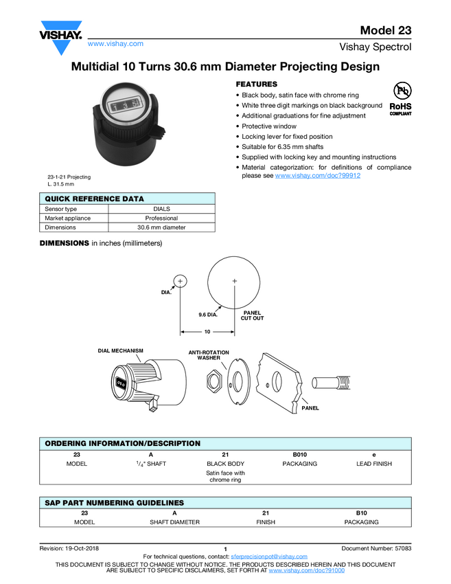 Model 23 Multidial 10 Turns 30.6 mm Diameter Projecting Design
