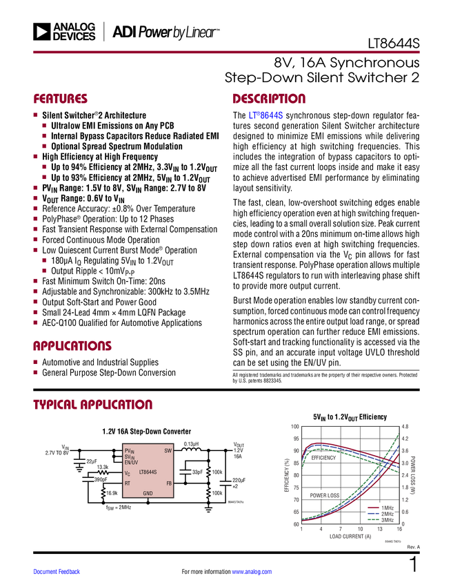 LT8644S 8V, 16A Synchronous Step-Down Silent Switcher 2