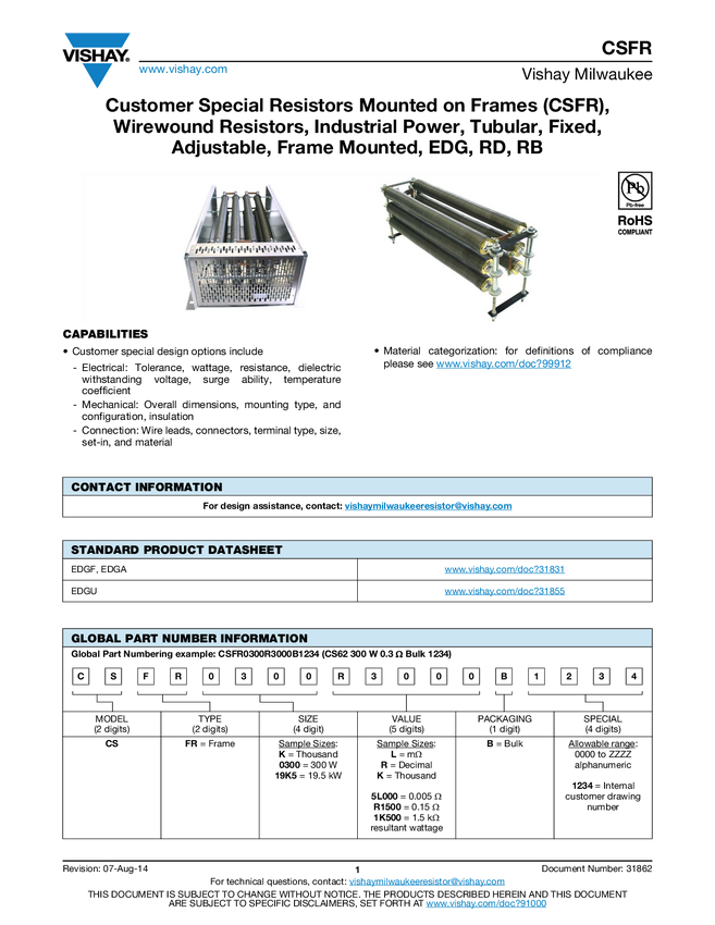CSFR Customer Special Resistors Mounted on Frames (CSFR), Wirewound Resistors, I...